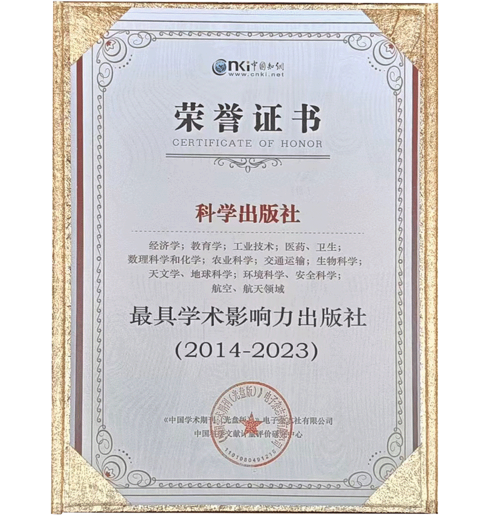 科學出版社入選經濟學;教育學;工業技術;醫藥、衛生;數理科學和化學;農業科學;交通運輸;生物科學;天文學、地球科學;環境科學、安全科學;航空、航天11個領域“最具學術影響力出版社(2014-2023)”榜單?!?nbsp;